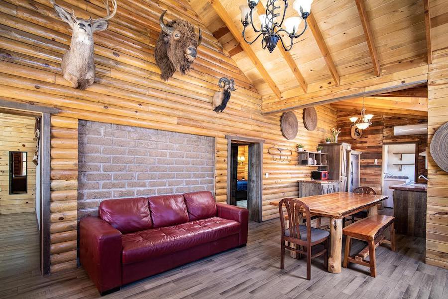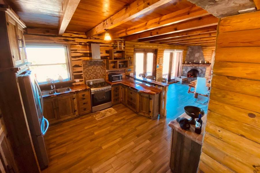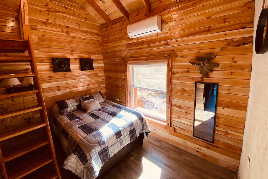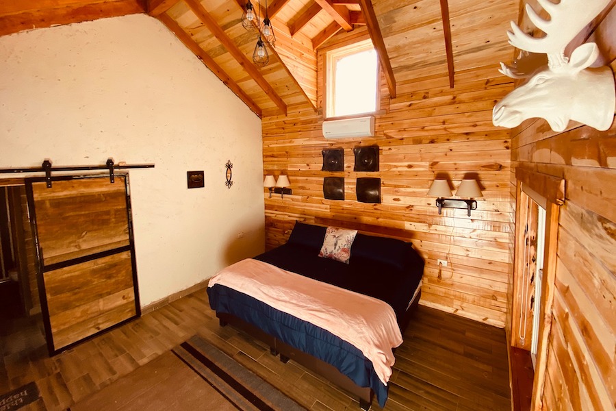 6 personas, 2 cuartos, 2 camas, 1 sofacama y 1 sofás, 1 baño completo, 1 chimenea, calentón/mini split, asador.